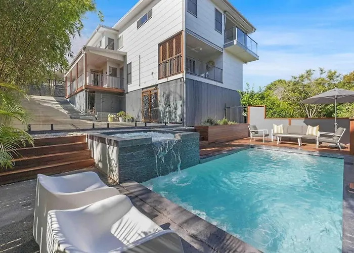 Le Village vacances de Noosa River se trouve dans une zone de 4,1 km et l'aéroport de Sunshine Coast est à 30 km de cette villa de 5 chambres. Cet établissement Chic Coastal Home On Orealla offre un accès facile aux merveilles naturelles telles que la plage principale de Noosa 4,2 et Sunshine Beach 1.